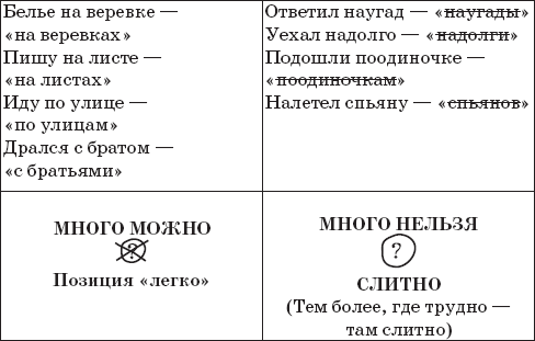 Теперь действуем так. При письме главная позиция и контроль – это СЛИТНОСТЬ. Варианты отсутствуют! А чтобы ее усилить, есть проверка МНОГО НЕЛЬЗЯ.