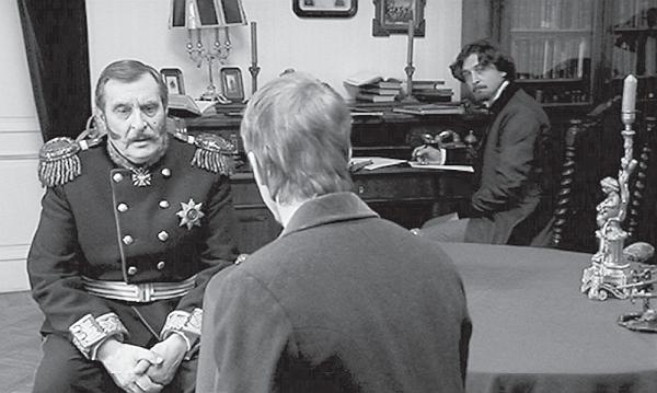 Генера?л Ива?н Фёдорович Епанчи?н стоя?л посреди? своего? кабине?та и с чрезвыча?йным любопы?тством смотре?л на входя?щего кня?зя. Князь подошёл и предста?вился.