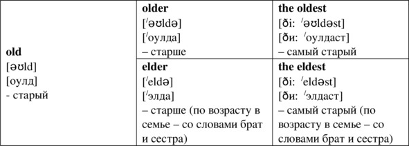 Есть также в английском языке исключения из правил формирования степеней сравнения прилагательных.