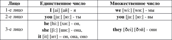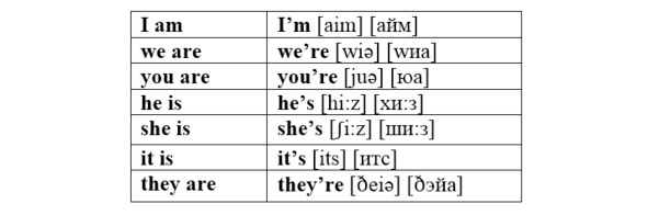 Заметим здесь, что формы глагола (в данном случае формы глагола to be) в соответствии с приведенной таблицей спряжения имеют представленную форму не только после указанных местоимений, но также и после слов, которые по смыслу могут быть заменены этими местоимениями. Это справедливо для местоимений he, she, it, they.