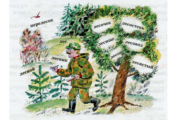 ЛЕС – ЛЕСник – ЛЕСной – переЛЕСок.