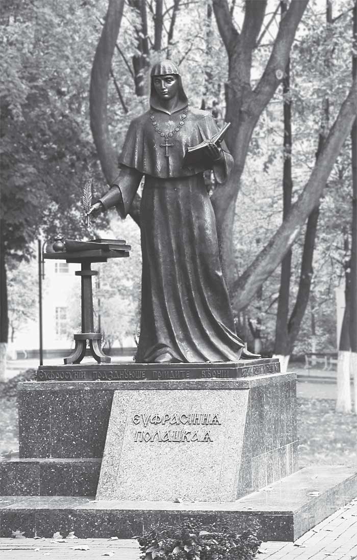 Помнік Ефрасінні Полацкай у двары студэнцкага гарадка БДУ (скульптар І. Голубеў)