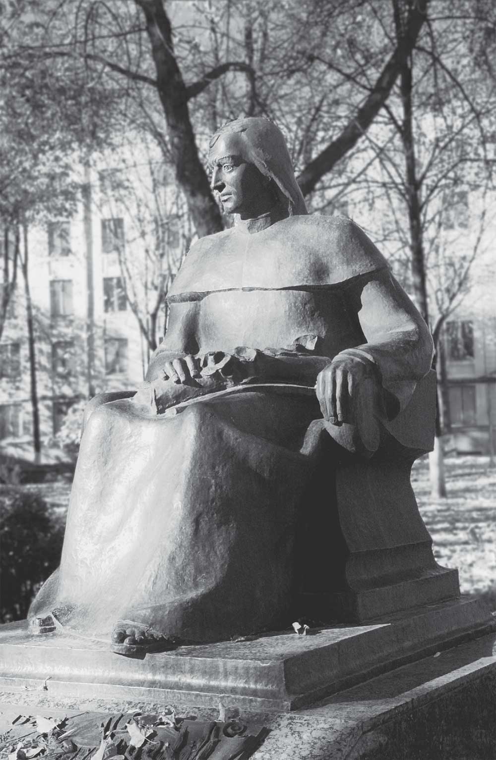 Помнік Міколу Гусоўскаму ў двары студэнцкага гарадка БДУ (скульптар У. Панцялееў)