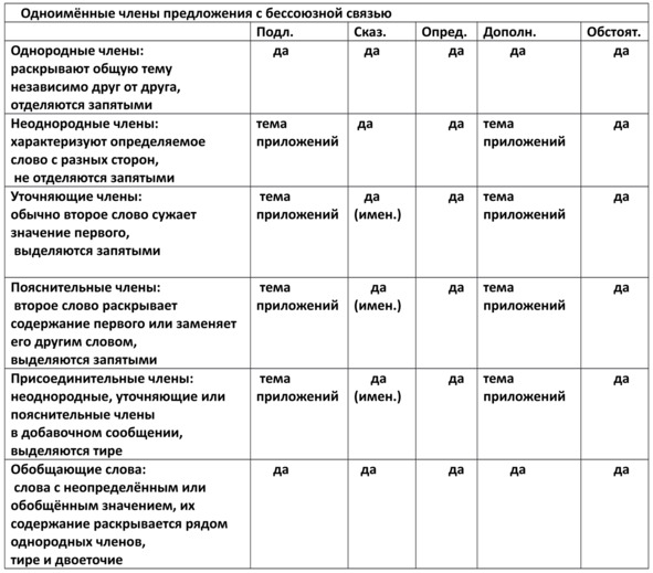 При этом по смыслу они могут быть однородными или неоднородными, а также уточнять, пояснять или обобщать друг друга.