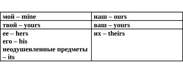 Вторая (абсолютная) форма притяжательных местоимений