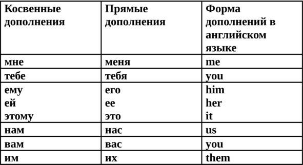 6. Личные местоимения в форме прямых и косвенных дополнений