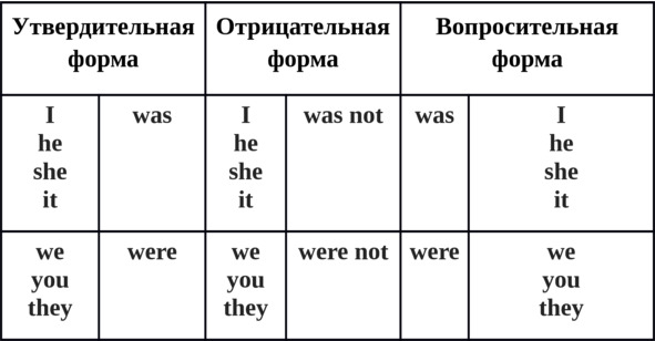 Спряжение глагола be в Past Simple Tense (в прошедшем простом времени)
