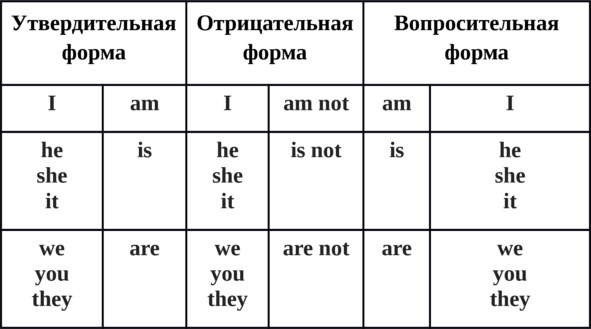 Спряжение глагола be в Present Simple Tense (в настоящем простом времени)