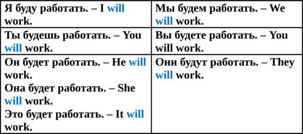 Я буду здесь завтра. – I will be here tomorrow.