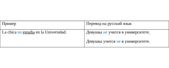 Порядок слов в испанском отрицательном предложении аналогичен порядку слов в утвердительном предложении, но следует запомнить одно правило: