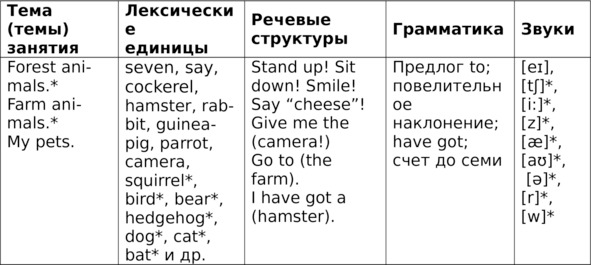 Учитель: Ой, кто это стучится к нам. Наверное, наши животные. (Смотрит в мешочек с игрушками.) О, да тут и лесные звери forest animals, и домашние животные farm animals (достает по одной игрушке).