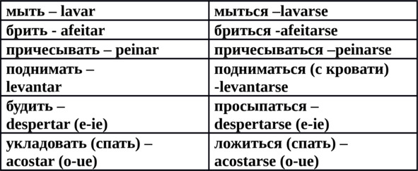 Возвратные глаголы в русском языке имеют постфикс —ся, в испанском языке в инфинитиве они имеют окончание – возвратную частицу -se. Сравните: