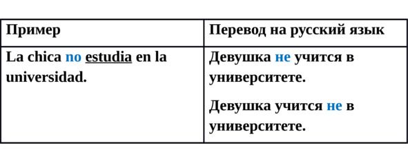 Порядок слов в испанском отрицательном предложении аналогичен порядку слов в утвердительном предложении, но следует запомнить одно правило: