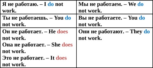Построение вопросительного и отрицательного предложения в простом настоящем времени (Present Simple Tense) происходит с помощью служебного глагола do и его формы does для 3-го лица единственного числа.