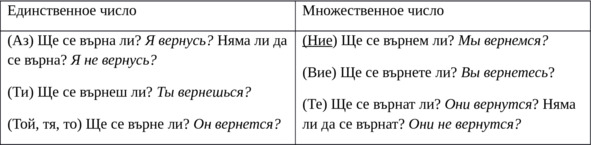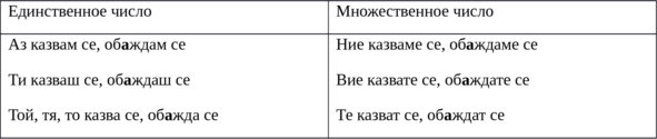 Казвам се Ана, а той е Асен. Аз живея в Москва, той живее в Пловдив. Днес ние се срещаме. Меня зовут Анна, а он – Асен. Я живу в Москве, он живет в Пловдиве. Сегодня мы встречаемся. Глагол встречаемся – се срещнаме – возвратный. Форма возвратных глаголов образуется при помощи безударной частицы се, которая ставится ПЕРЕД глаголом. Срещам (встречаю) — се срещам (встречаюсь).