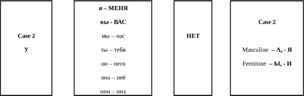 When the stem of a noun of feminine gender ends in a soft consonant or in К, Г, Х, Ш, Щ, Ж, then the ending is И. When it ends in other letters, then the ending is — Ы. However, it doesn’t matter, if you replace —А with —Я, and —Ы with —И, it won’t be very noticeable when pronounced-)! The MAIN THING, that you should memorize: in case of positive answer to the question in the model “У вас есть..?” the ending of a noun does not change. At the negative answer the noun’s ending ALWAYS changes. It depends on the gender of a noun. Noun’s ending varies in six cases in Russian. So, at the positive answer we use case 1 (the nominative form, the noun’s ending doesn’t change), at the negative answer we use case 2 (the noun’s ending changes to the second ending in relation to the gender of noun).