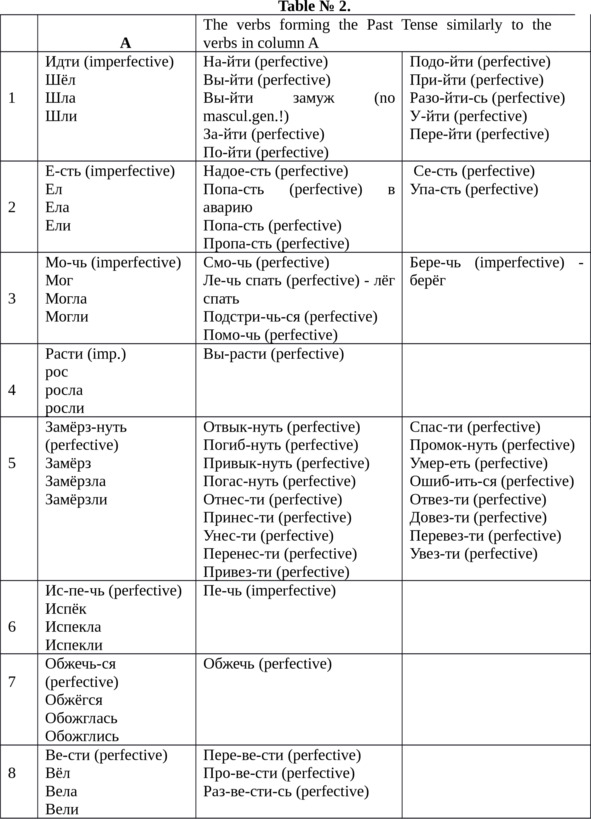 And how to form the Past Tense of the verbs “умереть” and “ошибиться”, you can find in table 2.