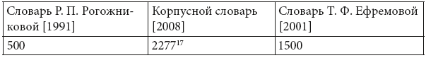 Естественно, этот вопрос в плане практически-описательном потребует еще серьезных усилий, началом этой работы могло бы стать сравнение списков в словарях [Рогожникова 1991], [Ефремова 2001] и [Корпусной словарь 2008], однако уже сейчас ясно, что прорыв в этой области можно ожидать в области корпусного анализа совместной встречаемости единиц.