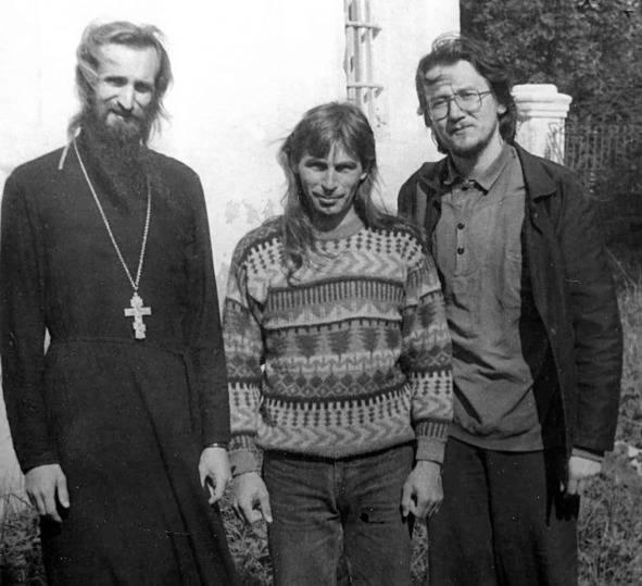 В гостях у инока Михаила в монастыре. Президент инвестиционного консорциума Сергей Гончар и поэт-публицист Терентий Травник. Коломна. 2002 г.
