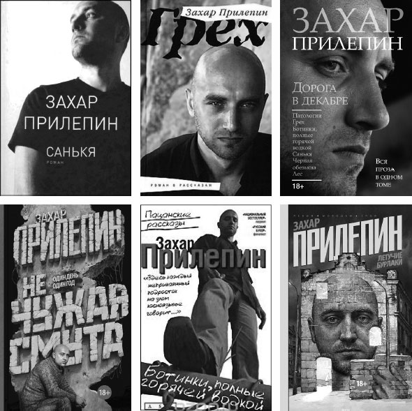 В-третьих, изображения авторов на обложках всё чаще становятся сугубо декоративными элементами, деталями общего орнамента книги, что фактически отождествляет писателей с теми же кинозвёздами. Такой приём широко используется, в частности, для книг Захара Прилепина. Захар «попирает» ботинком табличку-заголовок своего сборника. Лицо Захара крупным планом во всю полосу обложки книги. Сидящий в задумчивой позе Захар на фоне разрушенной стены с торчащей арматурой. Стилизованный под граффити прилепинский лик на кирпичной стене…