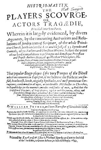 Один из самых длинных заголовков – в столь же объёмном (тысячестраничном!) памфлете английского автора Уильяма Принна «Бич лицедеев» (Histrio-mastix, 1632). 43 строки на авантитуле, напечатанные шрифтом в диапазоне от стандартного до т. н. диаманта – полтора миллиметра!
