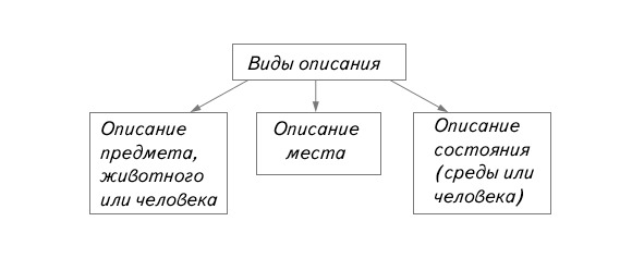 Тексты-описания бывают разные, в зависимости от того, одушевленный или неодушевленный предмет описывается: портрет, пейзаж, события, действия. Важно, является ли описание отдельным фрагментом в произведении, сочинении или сопутствует событию, включено в его содержание. Значимы в описании его функция и роль автора текста.