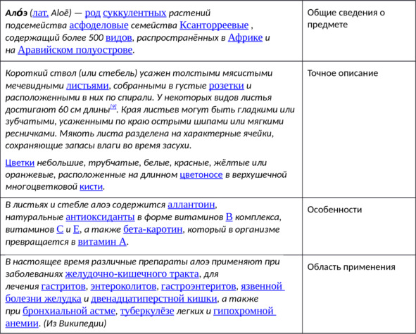 Расположение частей обычно следующее: 1 – общие сведения, назначение (функция) предмета; 2 – его составные части, важные для адресата сообщения (в порядке убывающей важности), их назначение и работа, описание, особенности. Обратите внимание на структуру текстов-описаний, представленных в инструкциях, словарях: