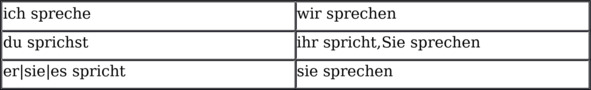 В первую часть запишите: sprechen, reden, verstehen, k?nnen, sein, haben, machen, geben.