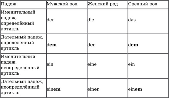 Мы уже коснулись в некотором роде дательного падежа. Чтобы указать падеж существительного перед ним ставится соответствующий падежу определённый или неопределённый артикль: