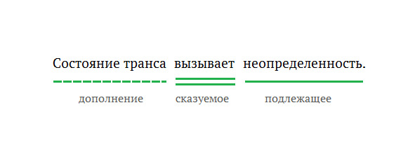 Как видно из схемы, я поставила дополнение в начало, а подлежащим завершила предложение. Инверсия в тексте возможна, когда я хочу продолжить развитие темы с последнего слова в предложении. Я хочу рассказать про неопределенность, и почему она вызывает транс. Однако дополнение стоит в винительном падеже и путает читателя. Редакторская норма нарушена. Наступает неопределенность.