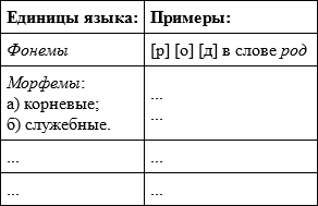 1. Приведите примеры из текста известных вам языковых единиц, оформив их в виде таблицы: