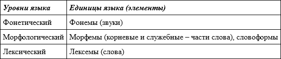 Таким образом, язык – это система подсистем, связанных иерархически. Эта иерархия проявляется в том, что единицы каждого предыдущего уровня являются строительным материалом для последующего, более сложного по своему устройству.