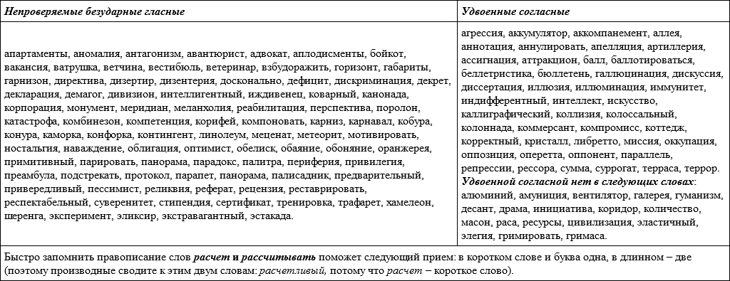 Написание непроверяемых и удвоенных согласных (в большинстве своем заимствованные слова) проверяется по словарю (футбол, зигзаг, ветчина).