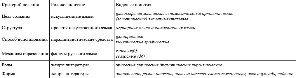Зaдaние № 19. Прочитaйте предложения. Выделите в дaнных предложениях критерий деления, родовое и видовое понятия.