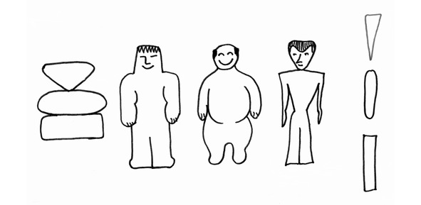 Fig. 3. The constitutional genetic types: “square” (strong-willed), “rounded” (emotional) and “triangular” (intellectual). To the left there is an image of a hypersthenic, squat structure of the body that gives the character expansiveness, to the right there is an image of the hyposthenic, “elongated” structure of the body, which gives the character delicacy, pliability