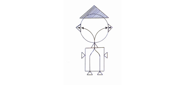 A head with ‘a hat’ on top of it can be a sign of the cerebral malnutrition. This can also be the cause of bad grades. The main source of the problems here is the impulsion from the intervertebral discs, which causes tension in the muscles of the back, neck, and can cause spasm of the blood vessels feeding the brain. Neurologists call this “a vertebral artery syndrome,” or “a vertebrobasilar insufficiency.” The zones of discomfort are usually shown, as a triangular neck, or as a triangular body with its vertex, touching the neck, or as a body composed of several shapes. Places, where shapes are narrowed, or two elements are connected, point to the level of the spasm.