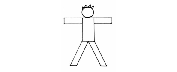 Fig. 9. A constructive drawing of a person in case of cerebral concussion: an overall relaxed body with “hair on end” on the head as the sign of the local suffering, without affecting the other parts of the body. In case of asphyxiation lesion (clamping of an umbilical cord at birth, for example) there will be a face, filled with elements: eyes, a nose, a mouth.