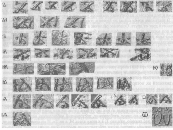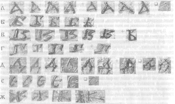 Рис.1. Изображения букв «Новгородского кодекса», начало XI века