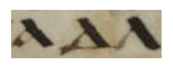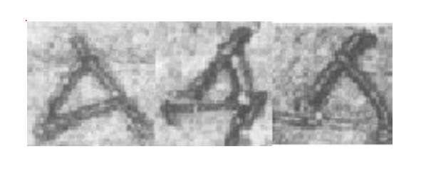 Рис.2. Изображения букв «А», «Д» и «Л» в греческих рукописях
