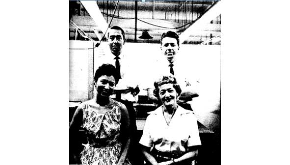 Фотография сделана в 1961. На фотографии изображены: Лес Хельсон (стоит, справа), Норма Бахман (сидит, слева), и Джинни Бири (сидит, справа).