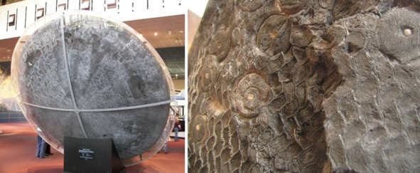 Справа фрагмент фотографии теплового экрана командного модуля «Аполлон-11» [3]