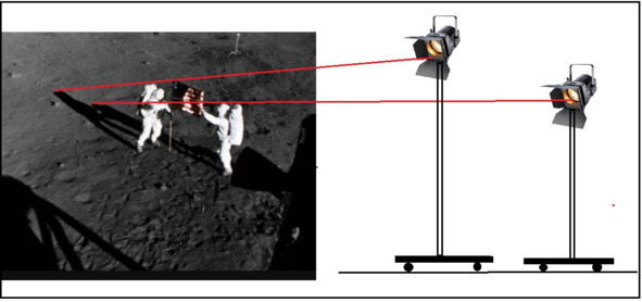 Но для американских агитаторов в этом конкретном случае есть существенная проблема. Освещение «космонавтов» происходило, как минимум из двух источников света. Это было показано выше, что и привело к различию длины теней.