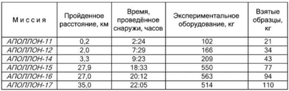Из этой таблицы следует, что американским «космонавтам невероятно повезло!