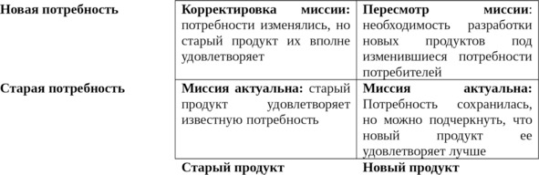 Чтобы разобраться с сущностью миссии фирмы, я предлагаю применить матрицу с осями Продукт (им может быть не только товар, но и услуга) и Потребность, которую этот продукт удовлетворяет.