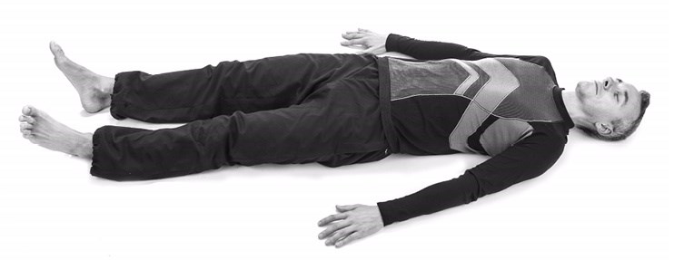 Pozycja wyj?ciowa – le?enie na plecach, r?ce wzd?u? cia?a, nogi proste swobodne, oczy zamkni?te (fot. 1).
