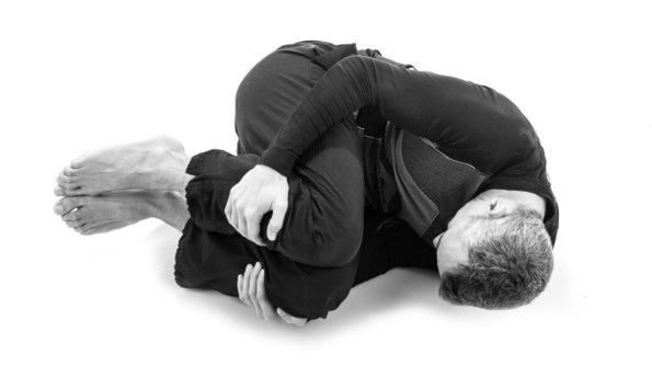 2. Embrion20 – po??? si? na dowolnym boku i zwi? w k??bek, obejmuj?c d?o?mi kolana (fot. 4). Napnij wszystkie mi??nie, zamknij oczy, zaci?nij z?by, wypu?? powietrze. Wytrzymaj przez chwil?. Gwa?townie rozple?, rozlu?nij swoje cia?o, spontanicznie rozk?adaj?c si? na pod?odze. Nie blokuj te? d?wi?ku ulgi, b?d? naturalny. Odpocznij.