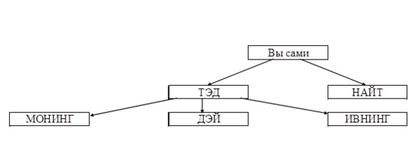 Управляет распределением задач и полномочий Тэд («тезаурус» переработки информации «и делегирования»). Монинг (утро) готов к решению самых сложных задач. Тэд делегирует ему самые свежие силы – физические, психологические и интеллектуальные. В то же время Монинг, готовый к решению самых тяжелых проблем, парень неровный: часто он тратит свои силы, не жалея их. Еще бы, поработав с шести утра до одиннадцати, он потом отдыхает почти целые сутки.