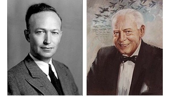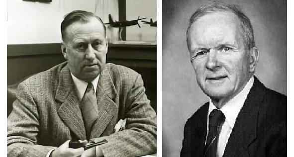 Фотографии организаторов технического обеспечения Лунного Обмана США: Слева Лерой Грумман Рэндл. Справа отец «ЛМ» Томас Джозеф Келли.
