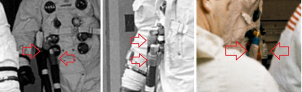 Такие оплошности можно, конечно, объяснить сменой ранца и шлангов. Но такие отговорки не выглядят убедительными и не подтверждены никакими документами НАСА о смене в процессе движения «космонавтов» на стартовую площадку.