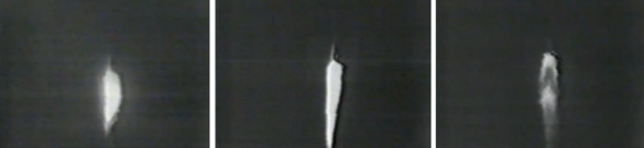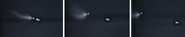 Следует признать, что головная часть, уцелевшая на кадрах фильма НАСА, должна была сильно измениться в своих размерах. Но на кадрах, которыми манипулировали американские обманщики, была показана картина увеличения размеров головной части, с учетом перспективных искажений, что в принципе не может быть. Из этого необходимо сделать вывод, что головная часть ракеты в виде белый продолговатого объекта, была изменена с помощью художников. Именно поэтому не наблюдается мерцания пламени двигателя головной части ракеты. А такое мерцание наблюдается при работе обычных ЖРД и водородных двигателей, пламя из которых издалека становится плохо видимым.
